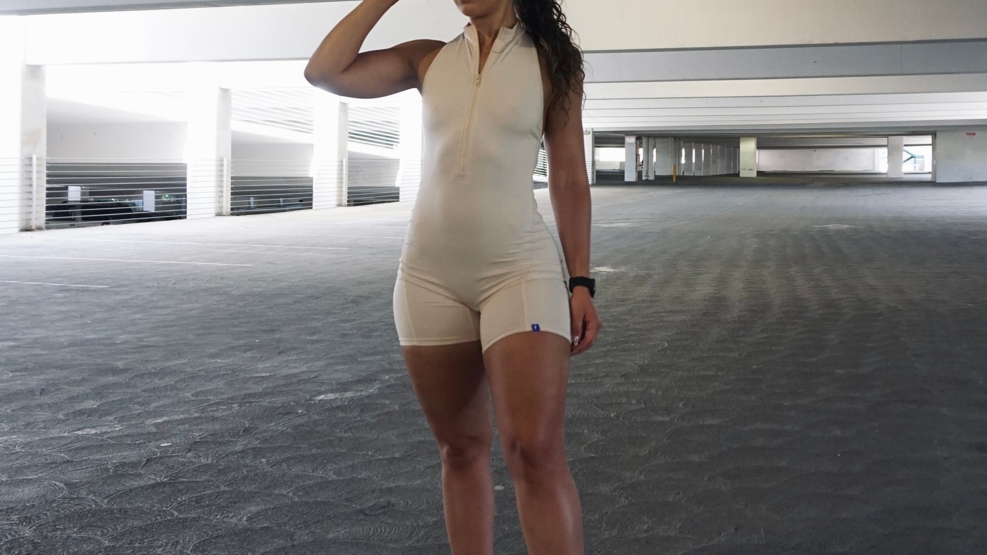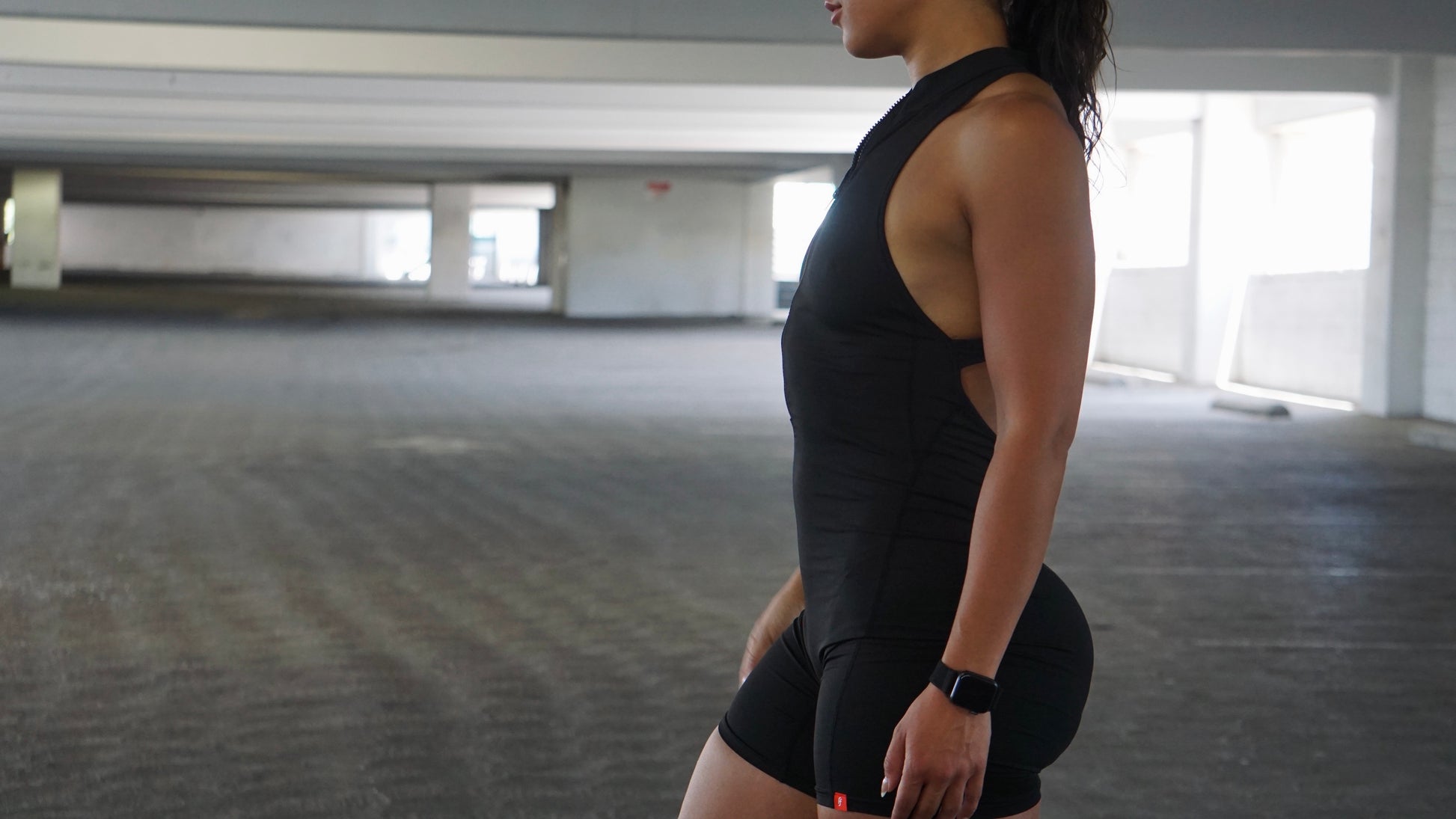 Engineered from a plush blend of polyester and spandex, this romper guarantees comfort and unrestricted movement. The open-back design serves dual purposes – giving your look style while also keeping you cool throughout your most intense training.